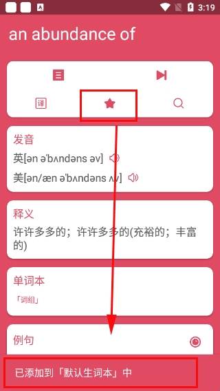 3、点击“收藏”图标可以将该单词收藏保存下来。
