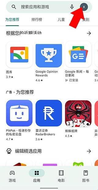1、首先我们登录自己的play商店账号,点击右上角的个人头像。