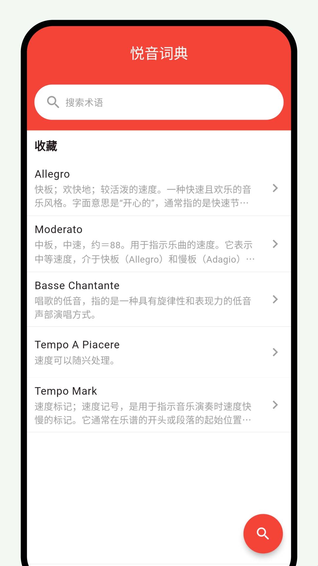 2、悦音词典为用户提供了丰富的音乐术语词典查询功能。
