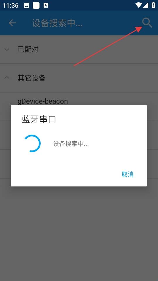 3、若在设备列表中未找到目标设备可使用搜索功能,点击界面上的搜索按钮,应用会自动扫描周围的蓝牙设备,并将搜索到的设备添加到列表中。