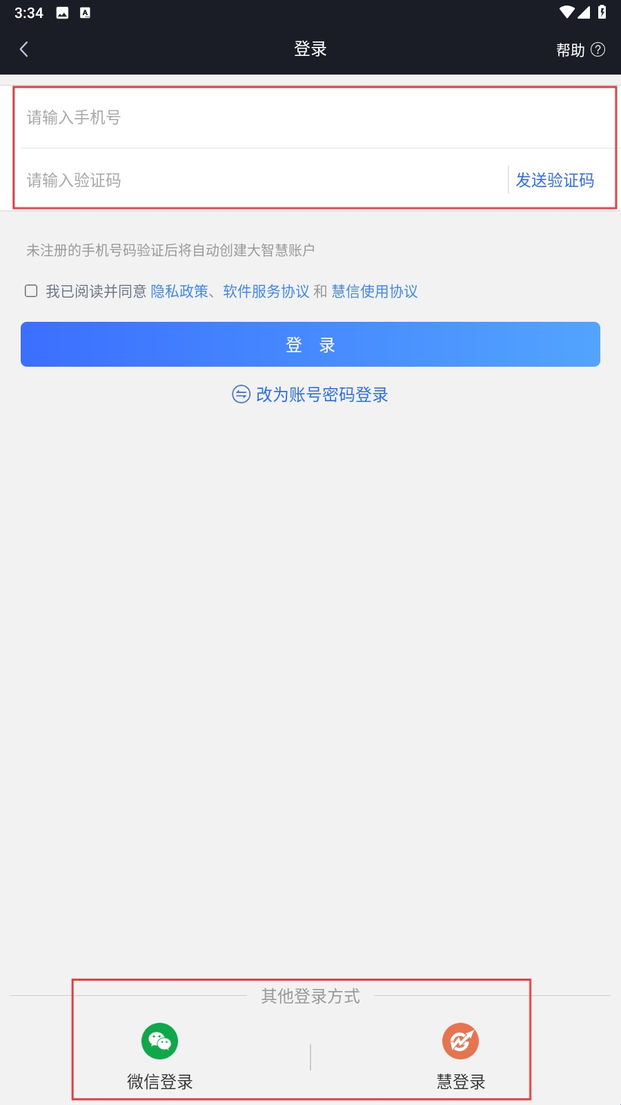 3、也可在登录页底部选【微信登录】或【慧登录】,按对应方式完成登录。