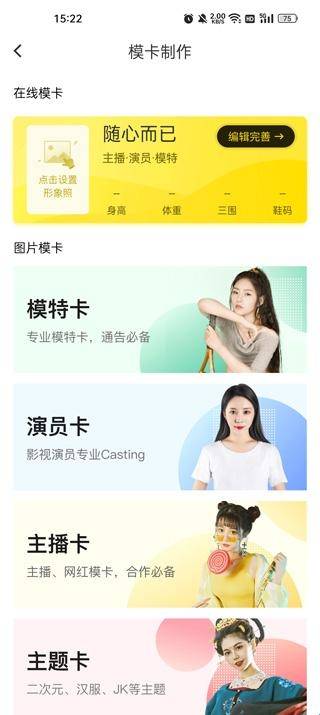 3、模卡App走过这么多年,作为一个专业的演艺人才效劳平台,曾经有了不少变化,你不只能够用模卡APP在线制造模特卡、主播卡、演员卡等演艺名片,还能够快速的找到与你有协作意向的商家。