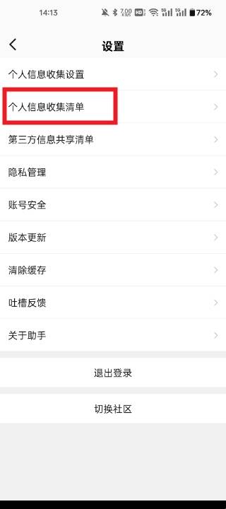 2、然后在设置中找到个人信息收集清单。