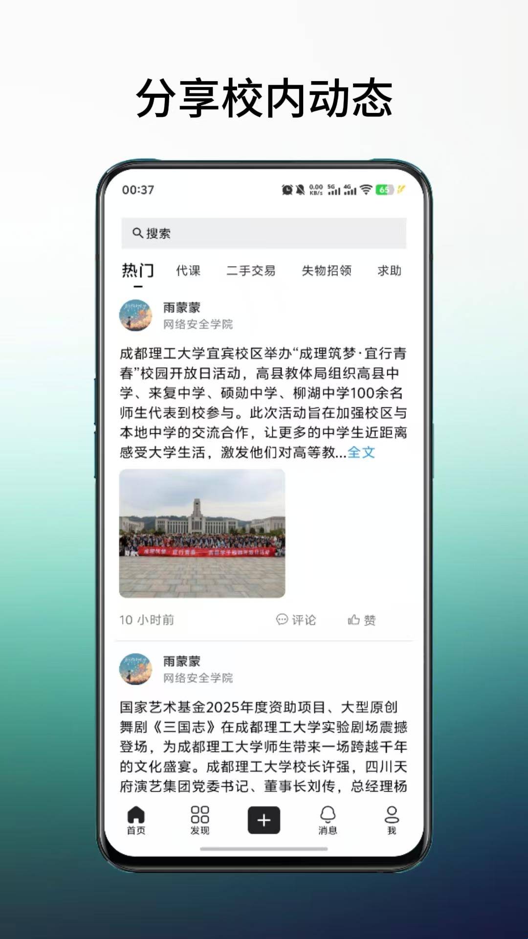 1、在首页中有很多不同的热门校内动态信息,用户可以随时在线查看。