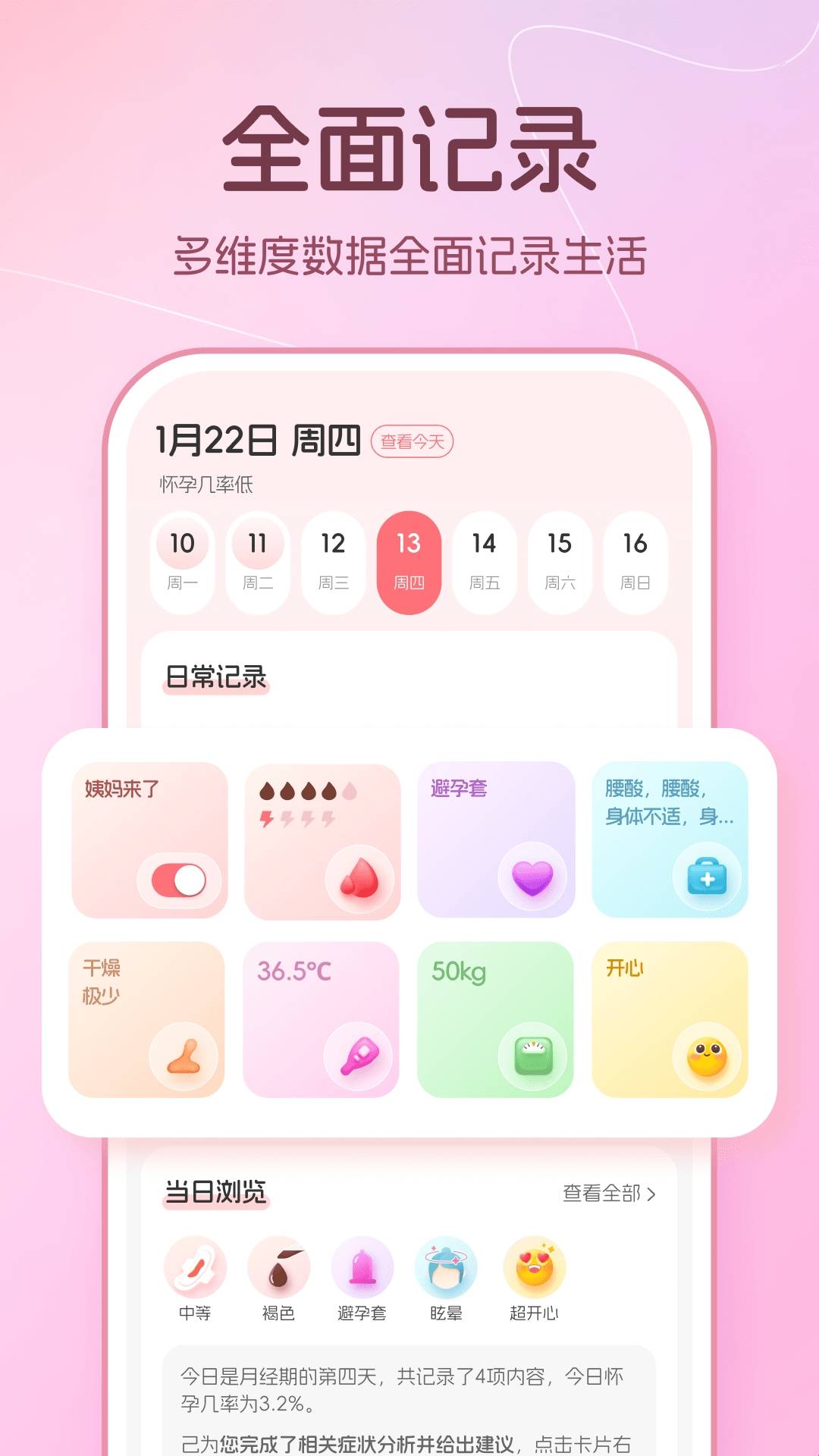 帮助用户全面记录自己的生活和经期,能够让你全方位的记录,快捷记录经期数据。