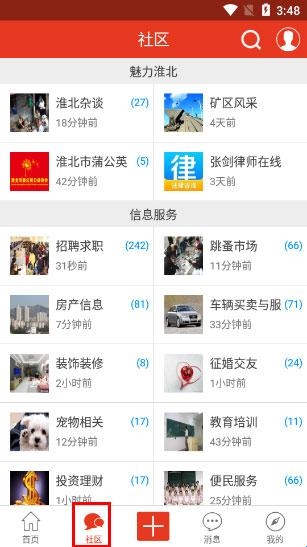 3、在“社区”界面,就能获取非常全面的信息分类板块。