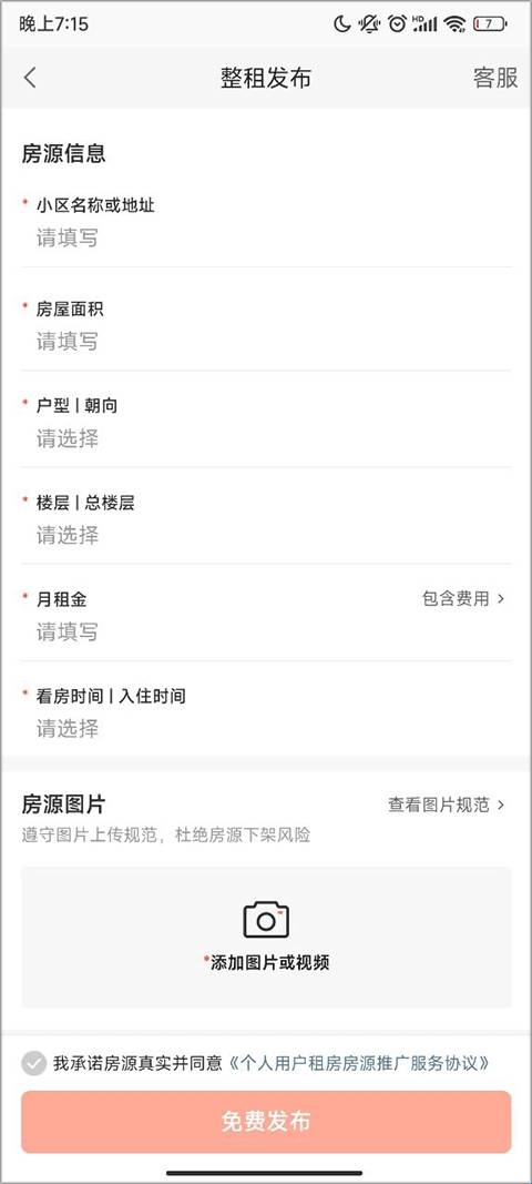5、在新界面里,填写自己的房源信息后,即可发布租房信息。
