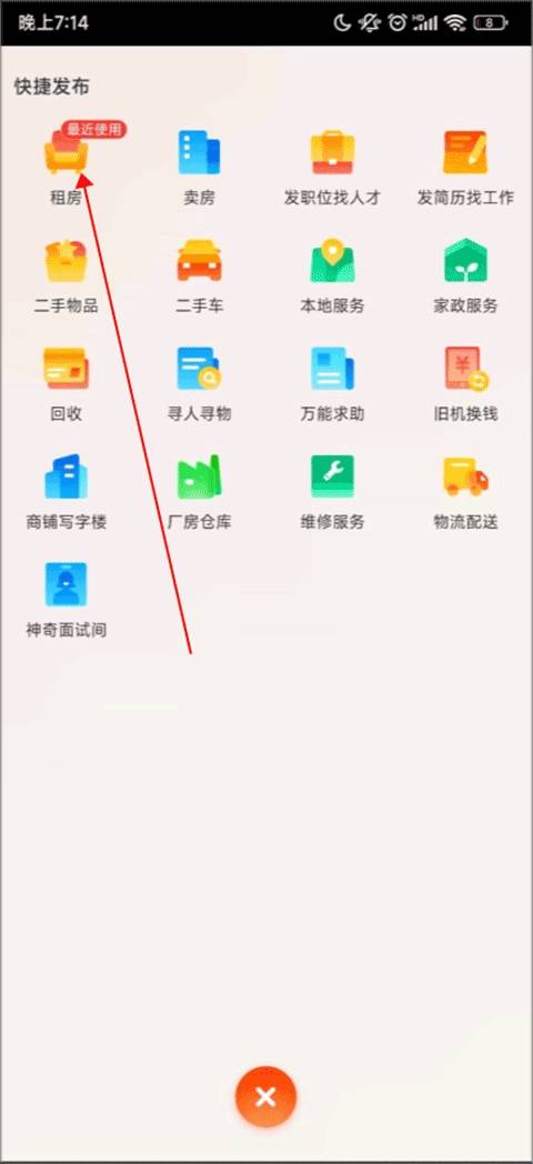 2、在快捷发布界面里,找到“租房”按钮,点击它进入新界面。