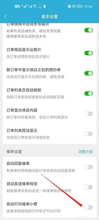 3、点击开启自动打印催单小票即可。