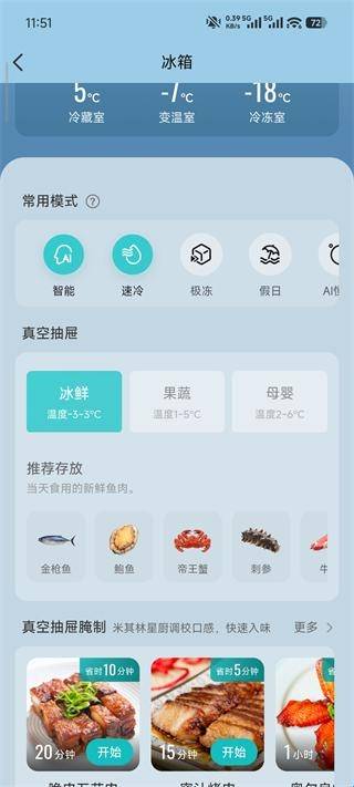 3.冰箱:可进行温度调节、模式选择、等常用模式。