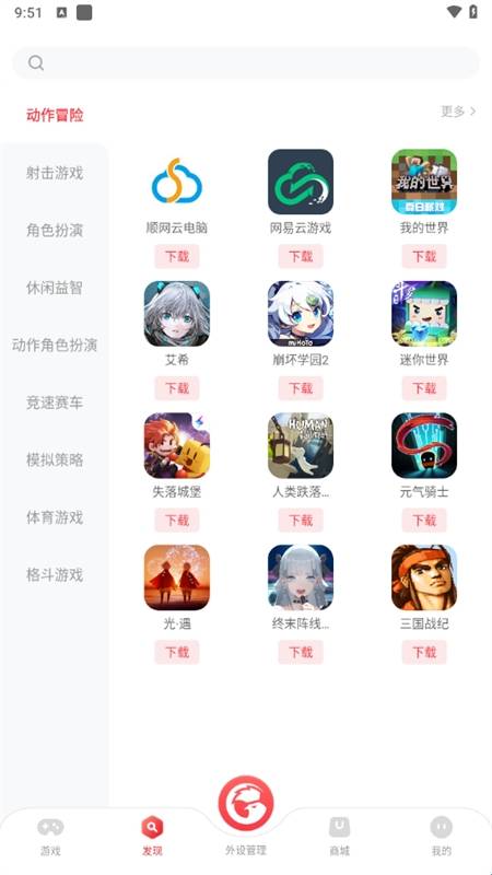 3、在发现界面下,我们可以根据不同的类型筛选各种游戏。
