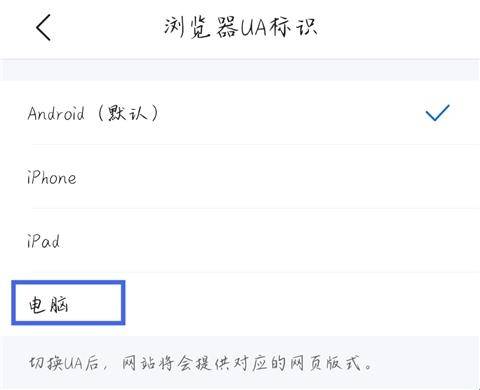 4、选择【电脑】,QQ浏览器就可以切换为电脑模式了。