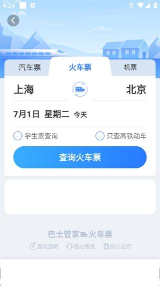 巴士管家app是一款提供交通出行服务的手机APP,尽管是巴士管家,软件目前已经包含了客运票、火车票、机票等多种票类服务,让大家的出行更无忧,同时还有定制快车服务,帮助用户快速的从车站出发到达目的地,更快更便捷,欢迎需要的朋友前来下载使用。