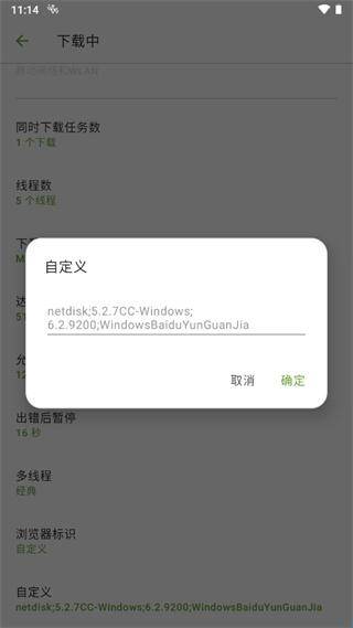5、最后在“Custom项”中输入netdisk;5.2.7CC-Windows;6.2.9200;WindowsBaiduYunGuanJia;