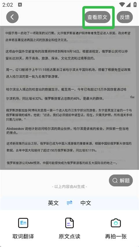 3、软件会自动进行翻译,点击【查看原本】即可进行对照。