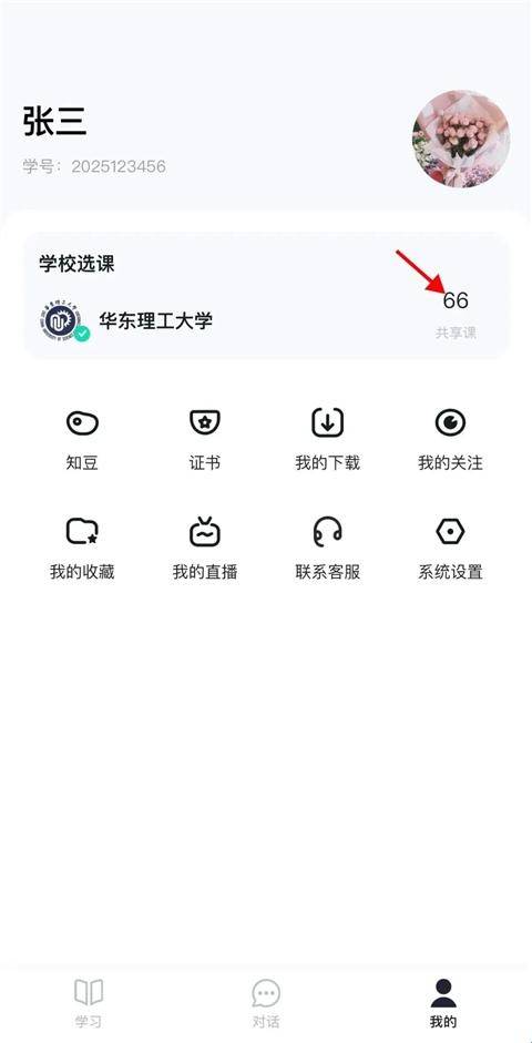1、进入知到app,选择【我的】,点击【学校选课】。
